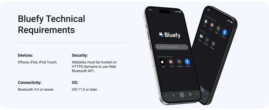Bluefy requires HTTPS connections, ensuring encryption and preventing unsafe data exchange.